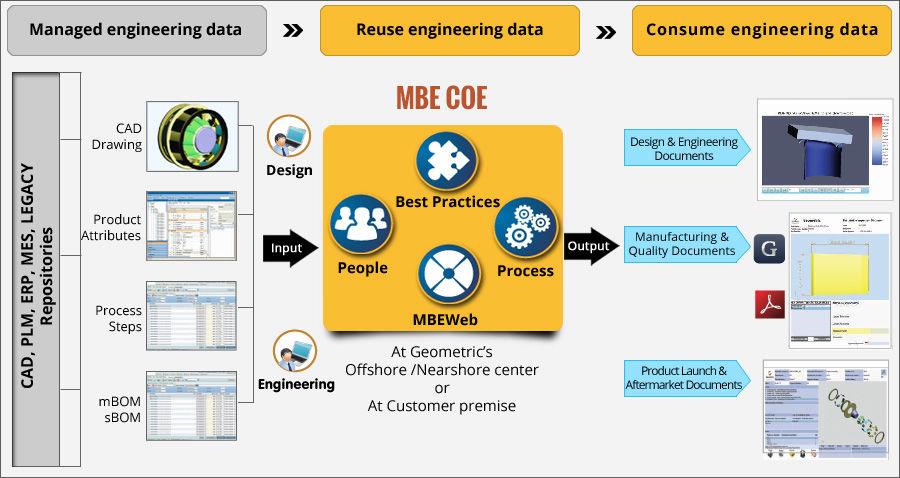 MBE Scalability: In this step, Geometric will assist the customer in expanding their definition and usage of MBE process documents to address additional use cases, such as quality, servicing and maintenance thereby establishing MBE approach across the extended enterprise.
